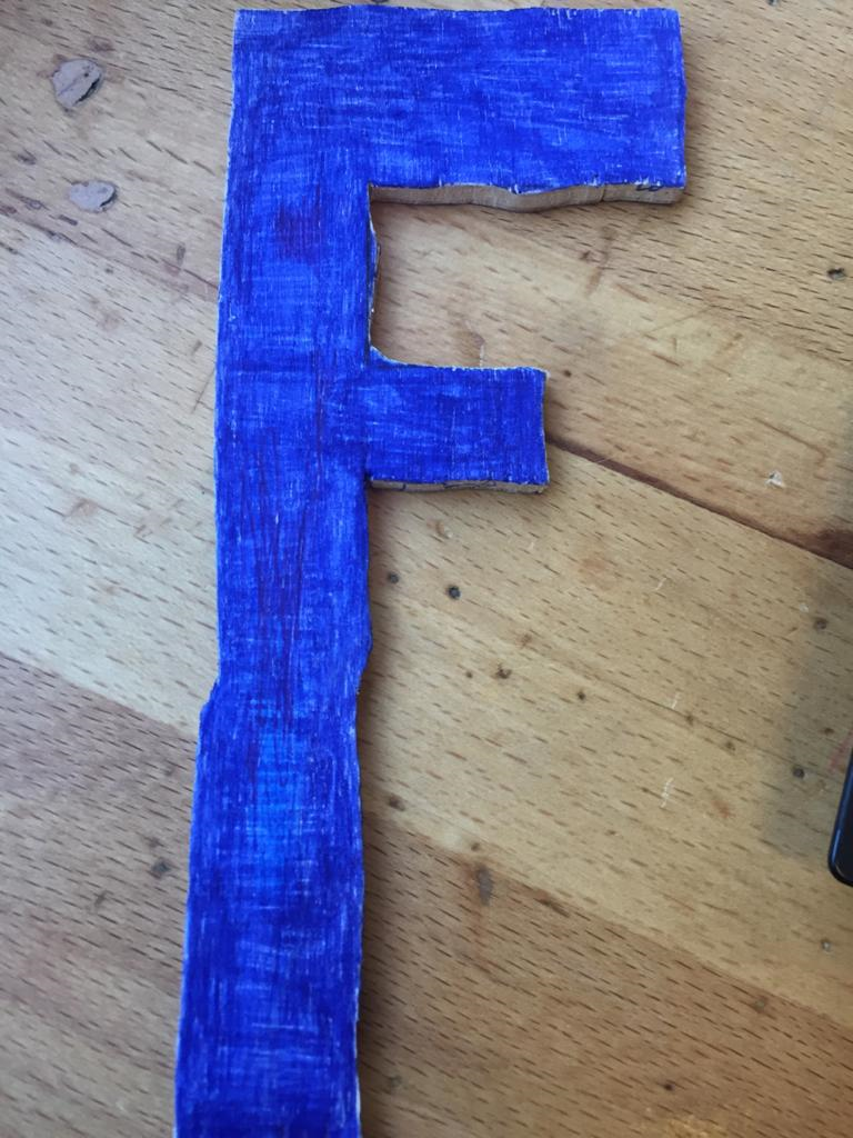Dit was een vaardigheid waarbij we met een figuurzaag de eerste letter van onze voornaam gingen zagen. We begonnen met een normaal dun stukje hout en daarna hebben we onze letter getekend, en begonnen met zagen.